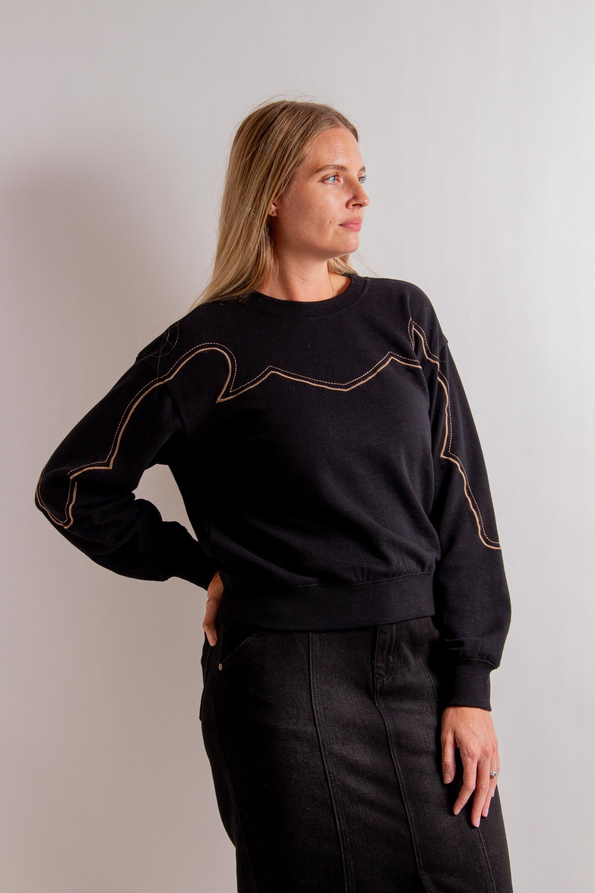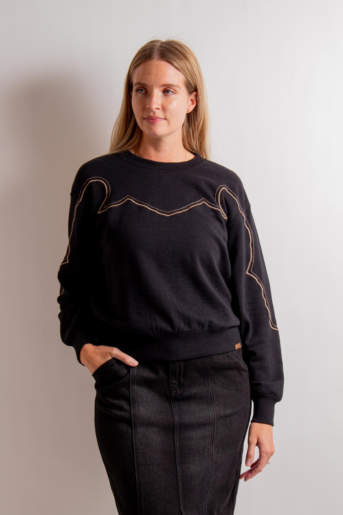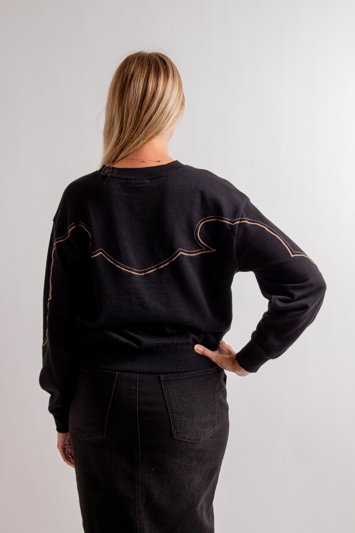 Look cute, stay comfy in this fun embroidered sweatshirt. Whether layered over a shirt or worn solo as a top, it brings Western charm to any casual look.