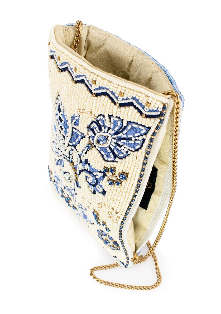 Easy Street brings timeless charm with its classic blue floral design and shimmering beadwork. Effortlessly elegant, this bag is your perfect companion for any stylish stroll.