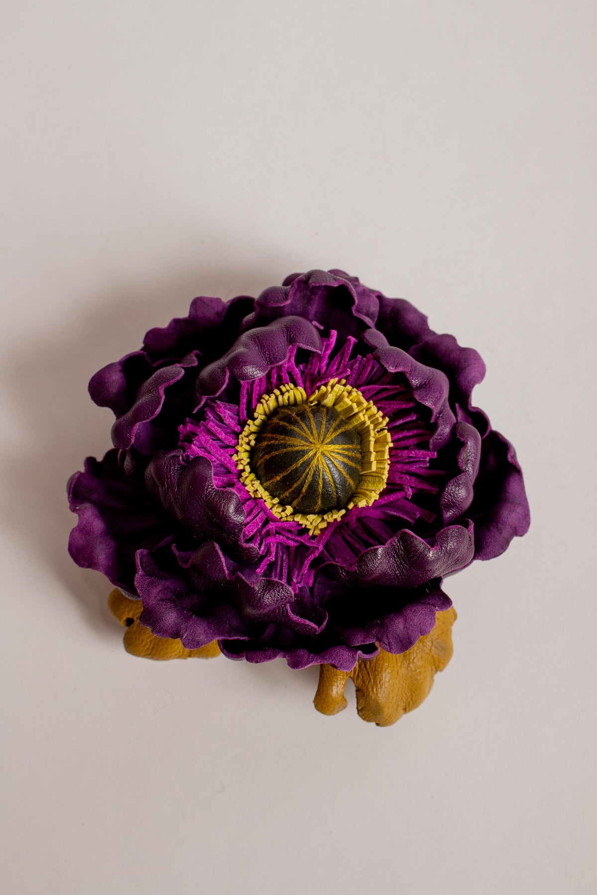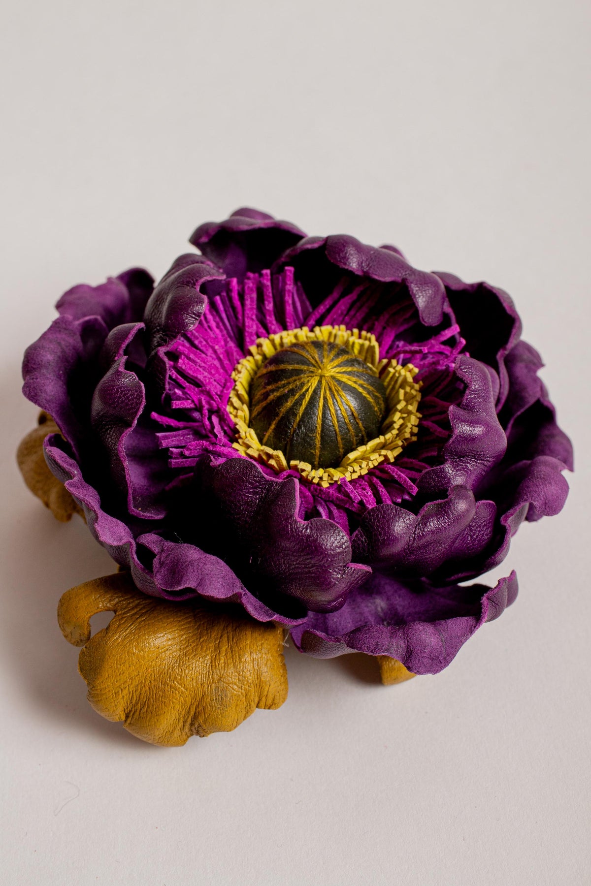 Custom Purple and Green Poppy Flower Brooch/ Hat Pin