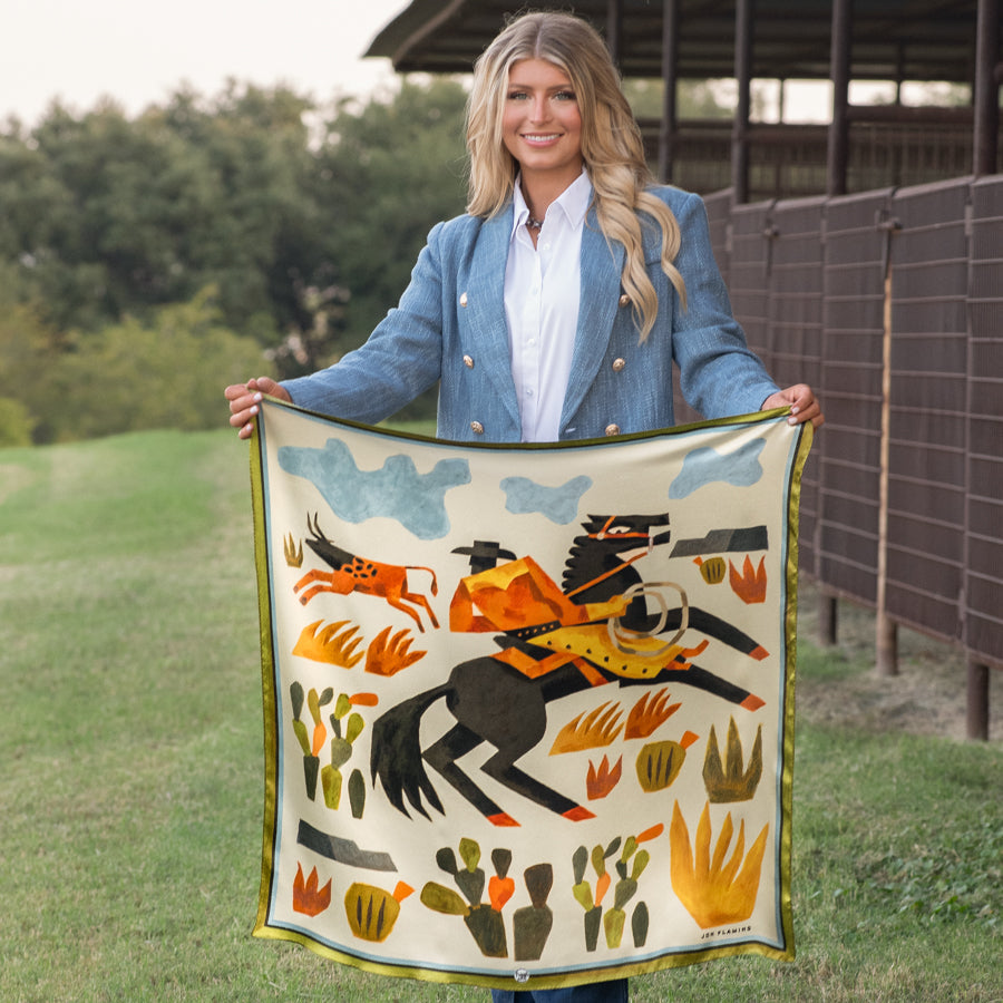 *Please note, all Jon's scarves are on a heavier 14mm satin silk that set his wild rags apart. Don't miss out on these limited collector silk scarves, sure to be passed down as a family heirloom. Click here to read more about Jon Flaming and his work.