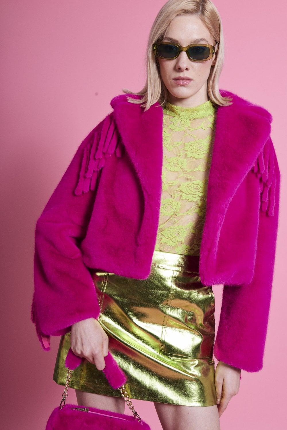 Handmade Pink Bamboo Lyocell Blend Jacket with Tassels. Fabric: 15% Tencel, 29% Bamboo, 56% Viscose. Lining: 100% Viscose