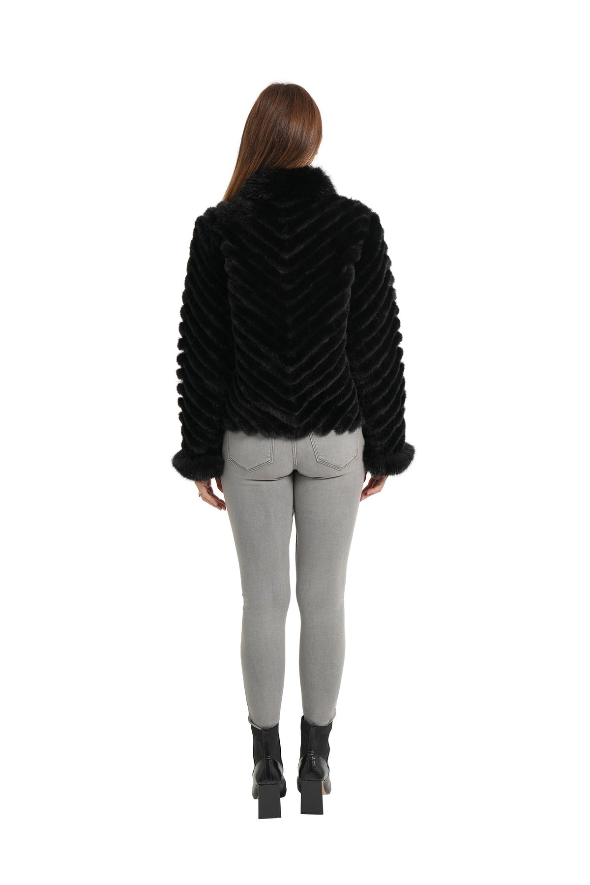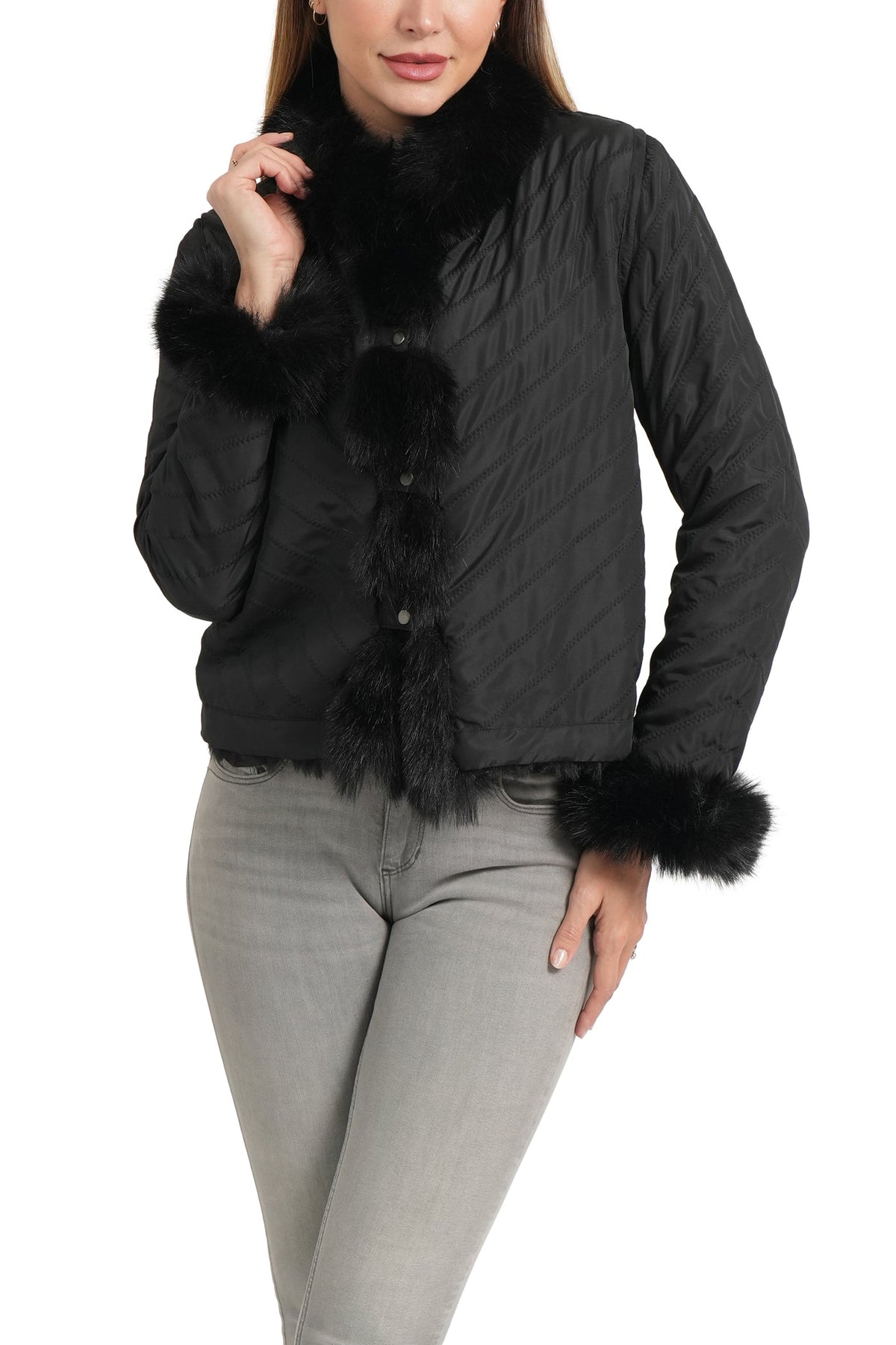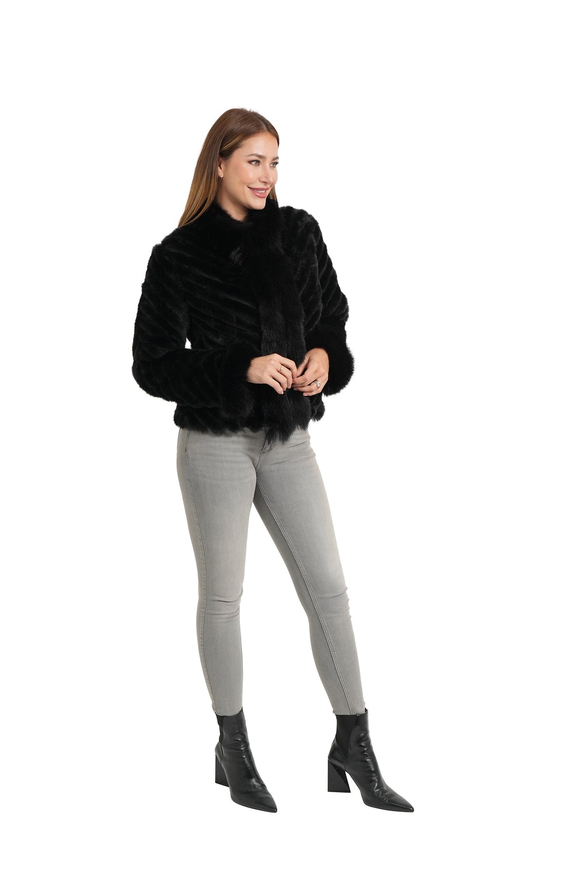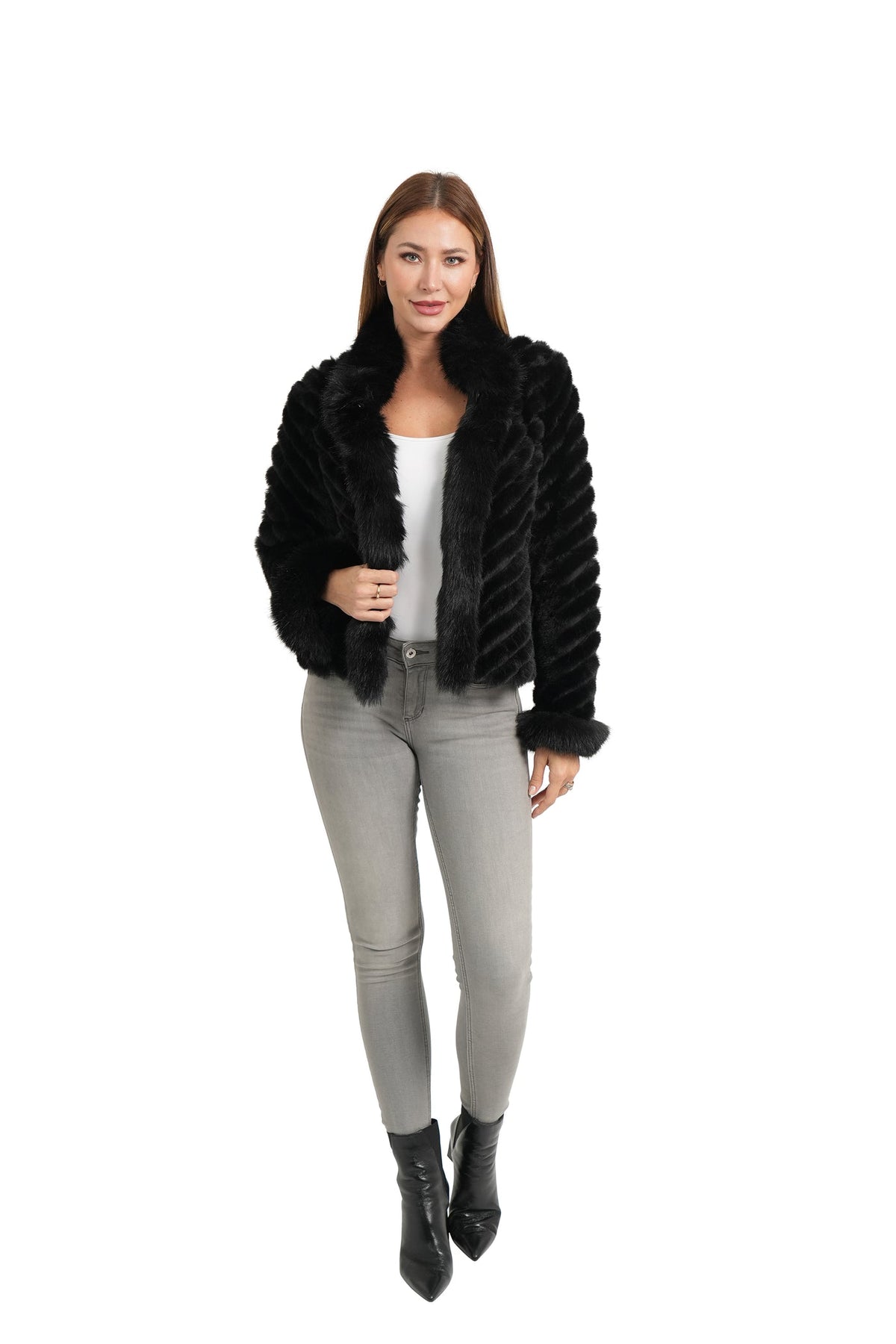 Meghan reversible faux fur jacket, magnetic button closure, slit pockets, relaxed fit.