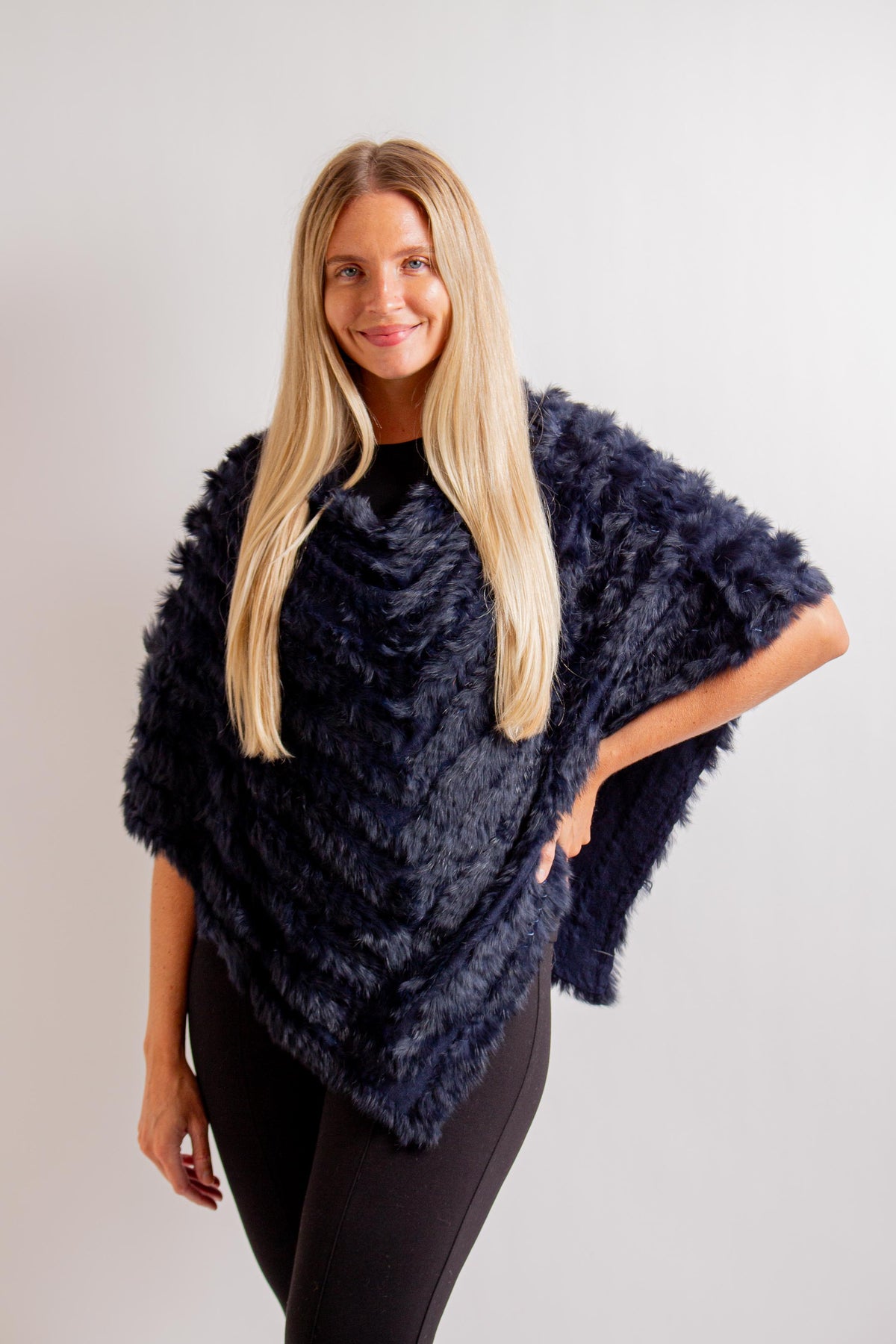 Black Cashmere Blend Coney Fur Poncho. Fabric: 100% Fox Fur. 100% Cashmere