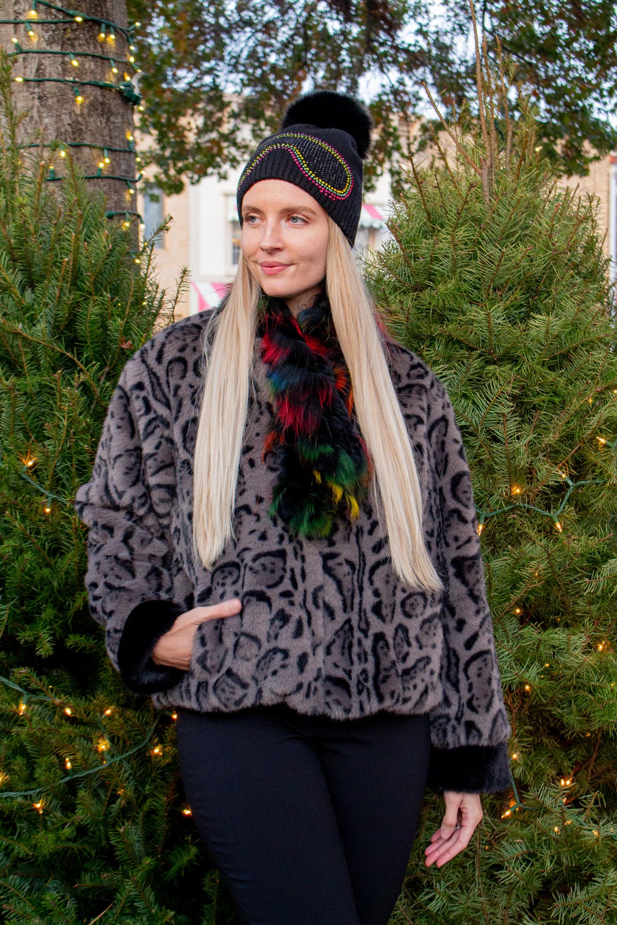 Leopard Print Faux Fur Bomber Jacket with Front Zip Closure. Fabric: 100% Polyester