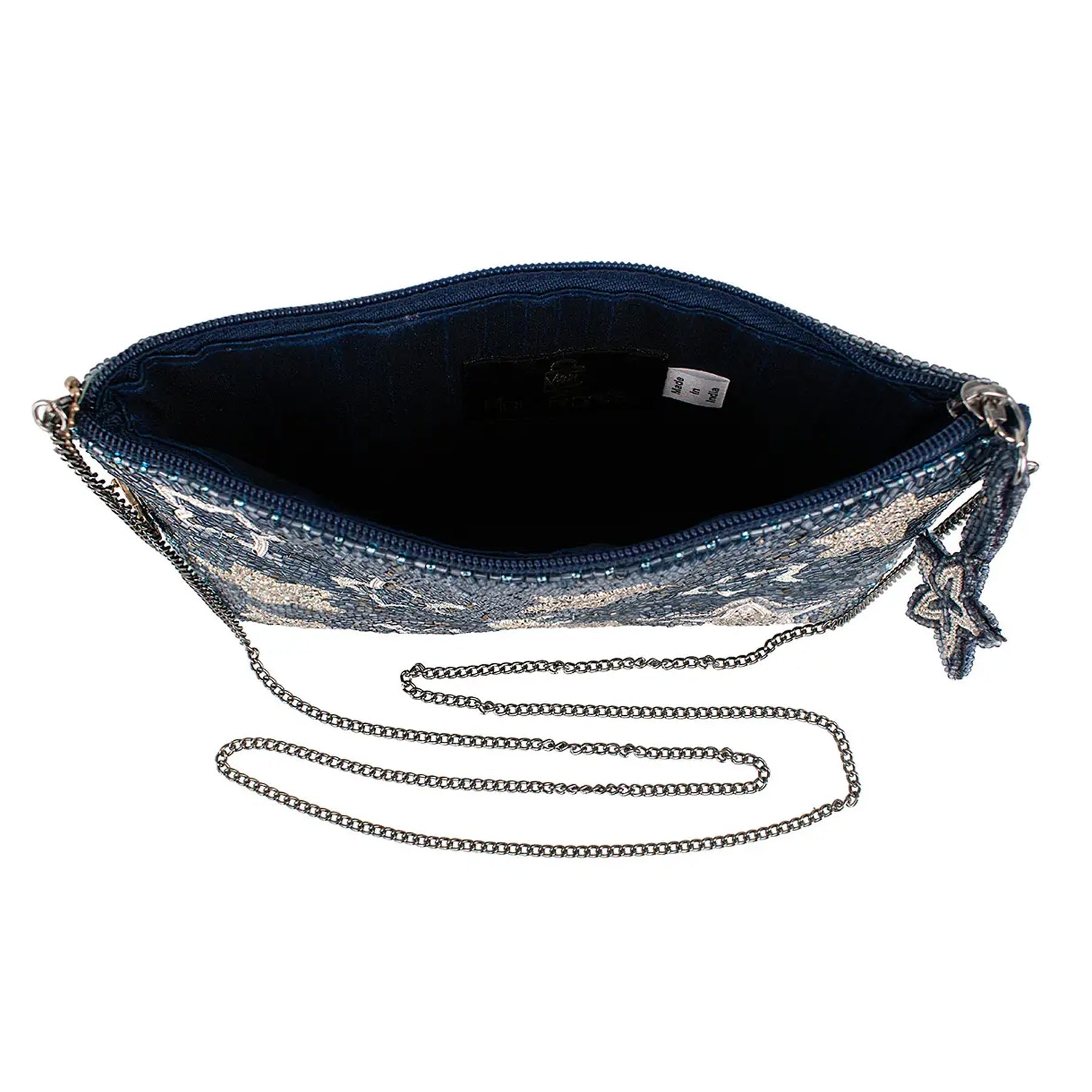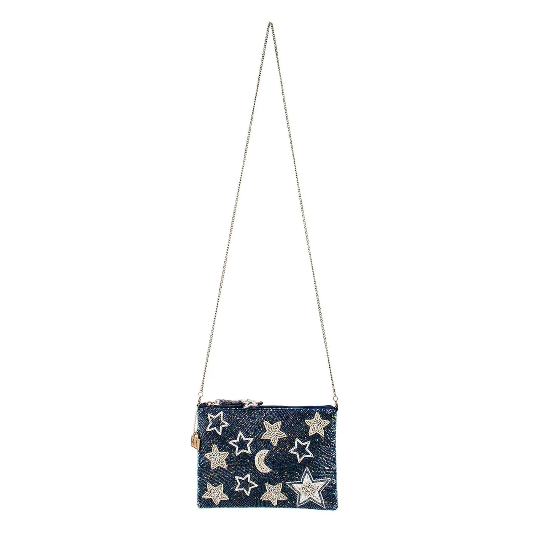 Catch some serious star power! This sparkly stunner purse is bursting with beaded stars and a dreamy moon made for moonwalks, dance floors, and everything in between. This stylish women’s purse features a removable crossbody chain strap for versatile carrying, a secure zipper closure with a chic beaded zipper pull, and a spacious interior that conveniently fits your phone for everyday use.
