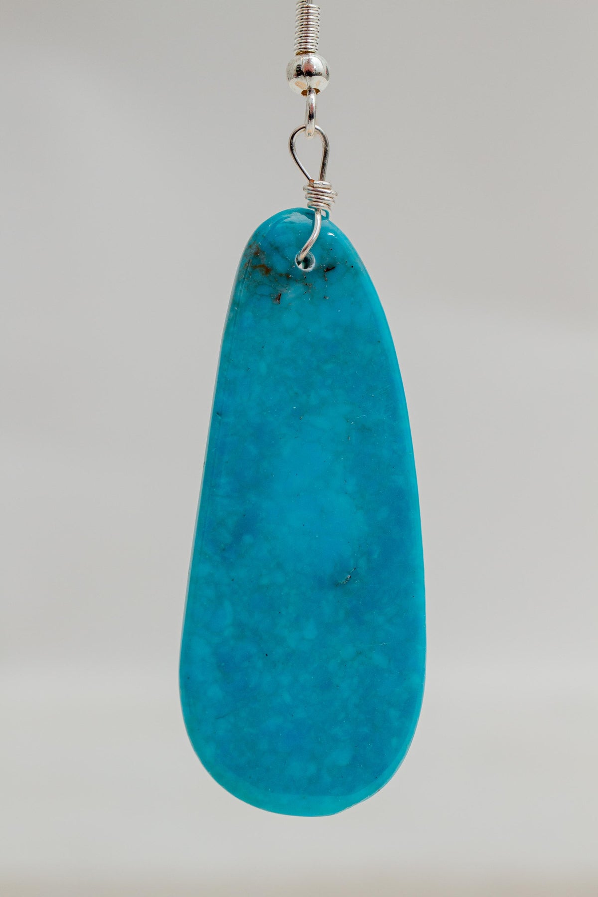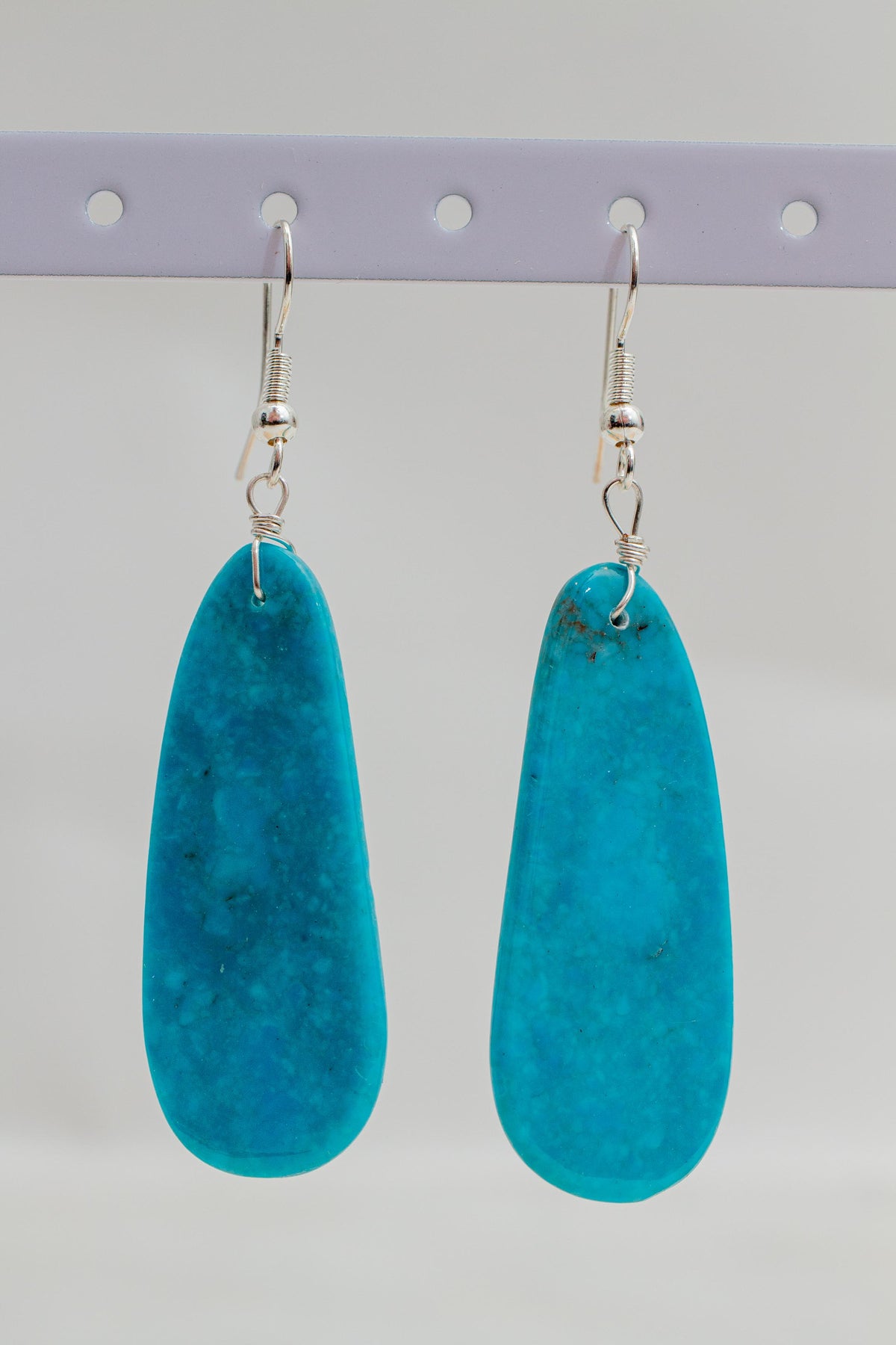 Large Blue Turquoise Elongated Oval Earrings on Silver