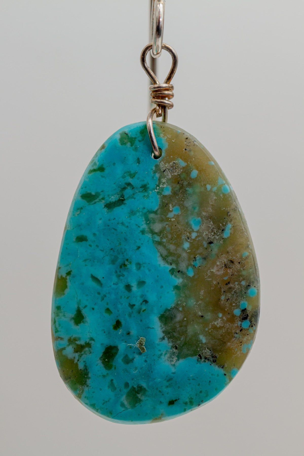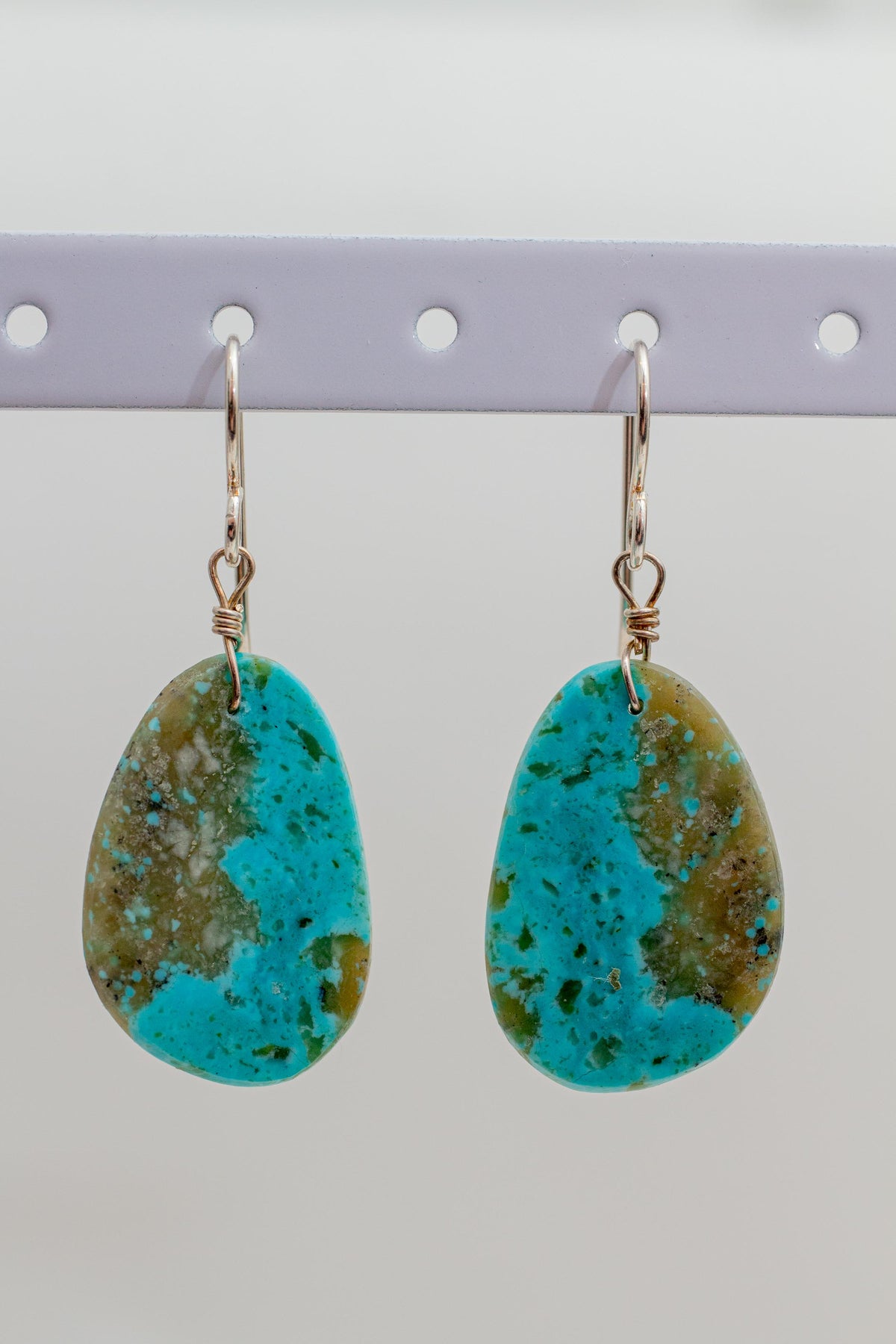 Gray Matrix Green Turquoise Oval Earrings on Sterling