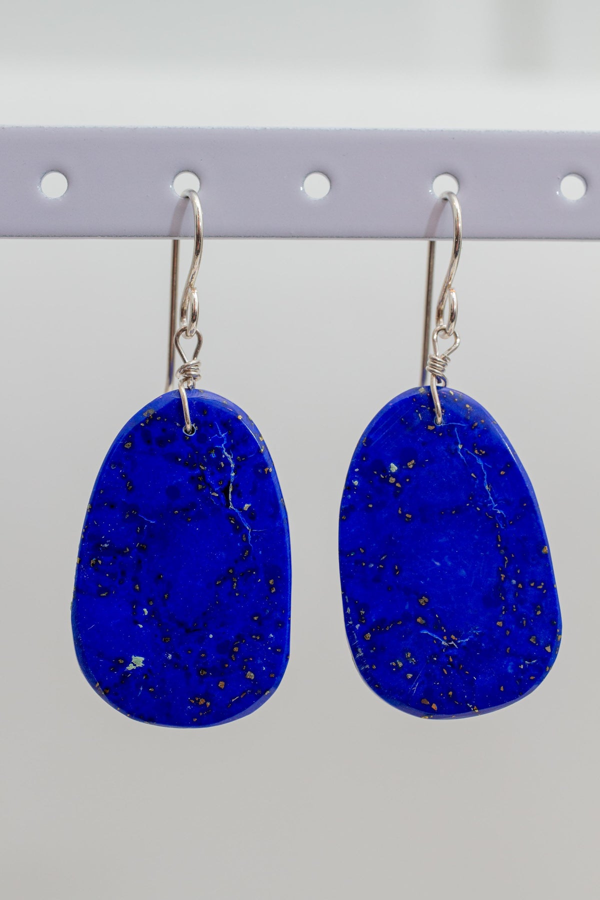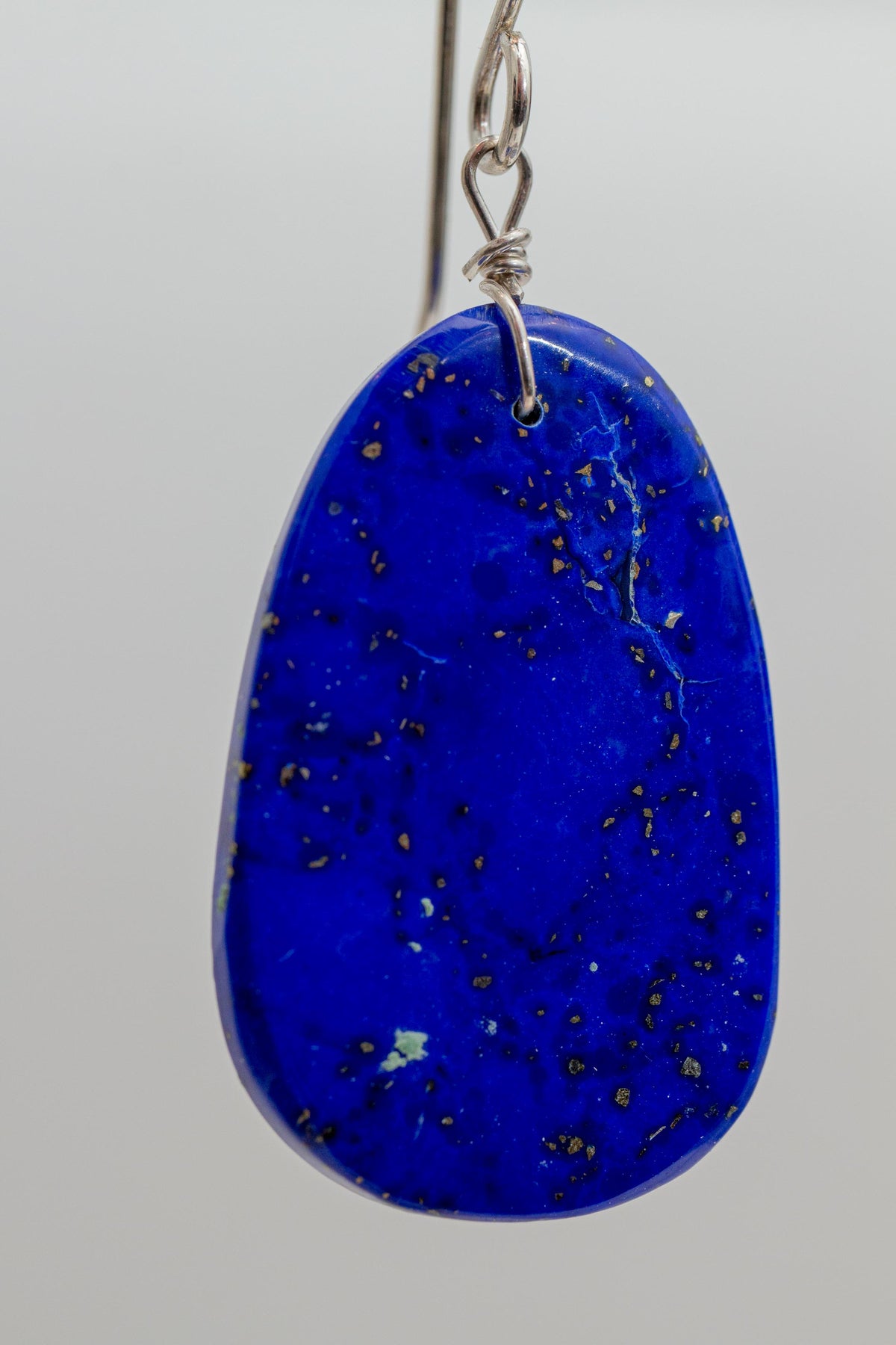 Small Elongated Oval Lapis Earrings on Sterling Native American- Handmade By: Ronald Chavez