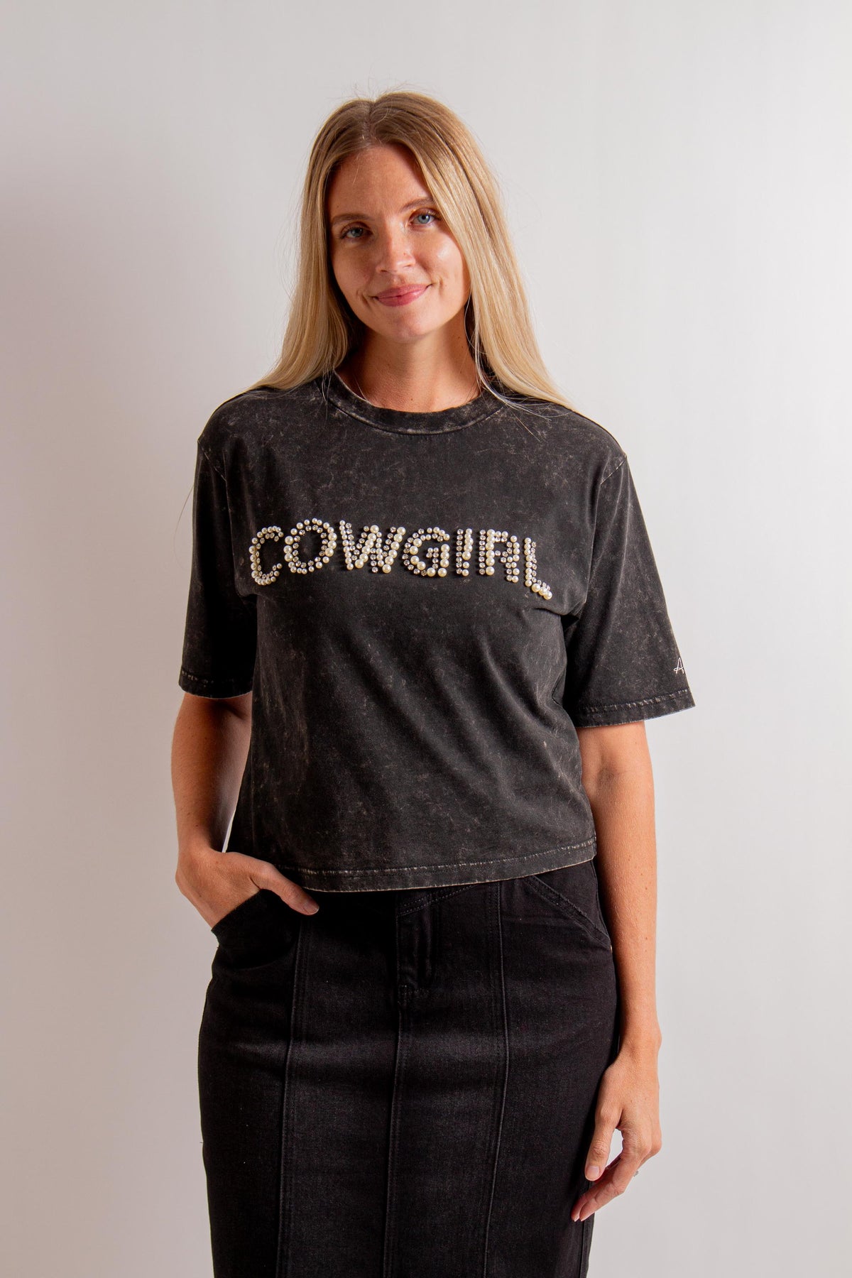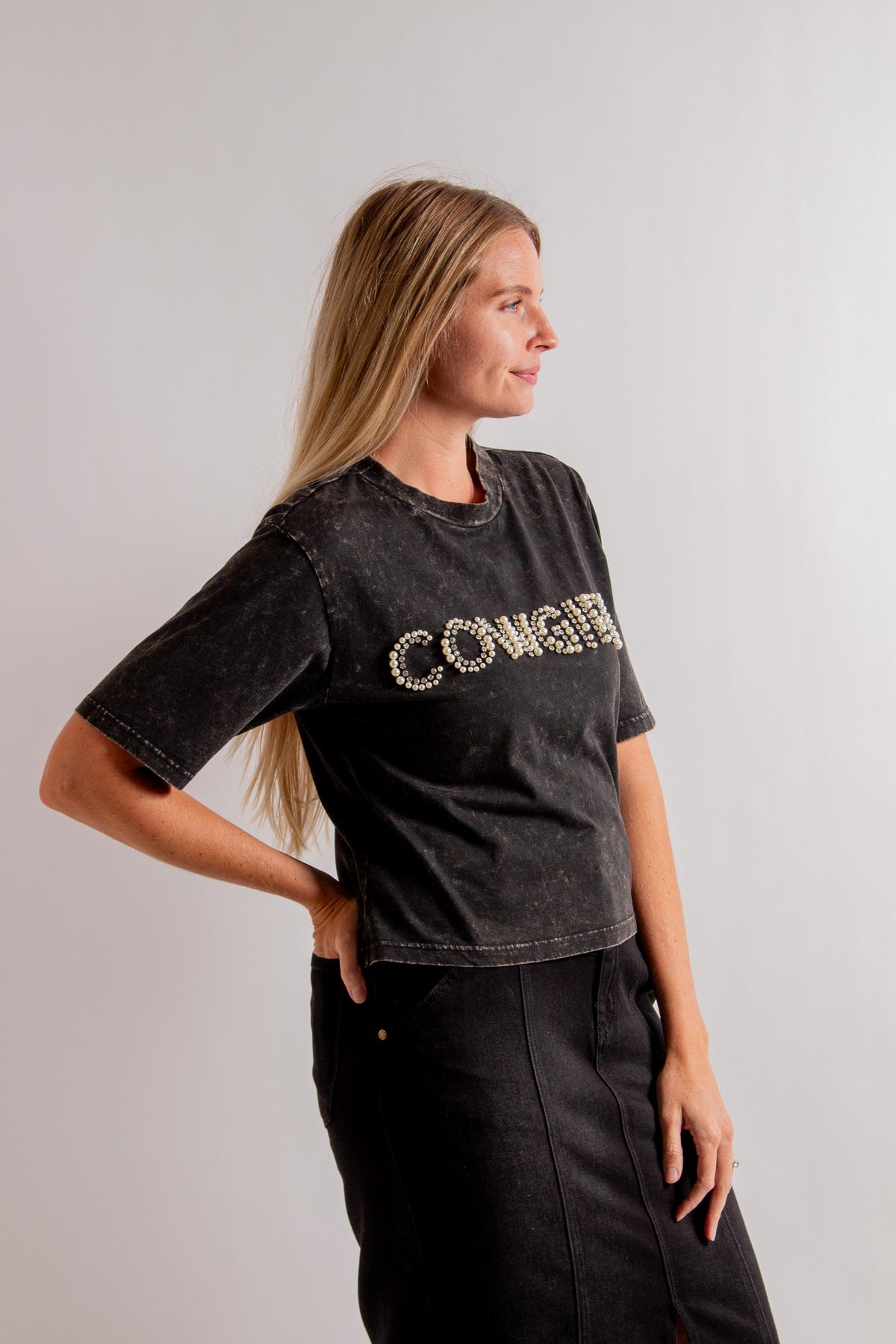 Let your cowgirl spirit shine in this statement-making tee. Emblazoned with pearls and rhinestones, it's a jazzed-up take on an everyday essential.
