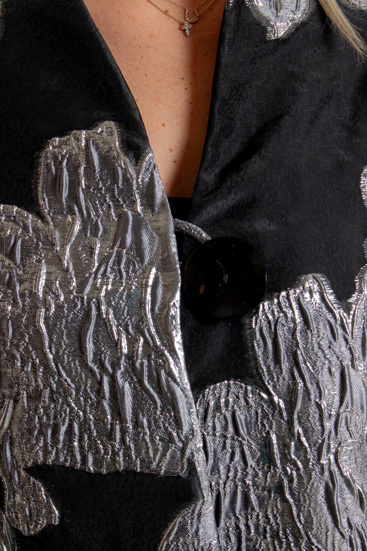 45.9% Polyester, 28.6% Nylon, 25.5% Metallic