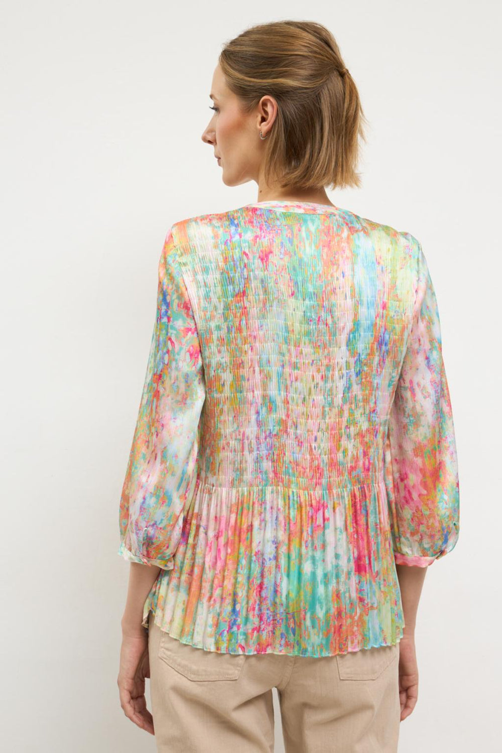 "Cidro" Watercolor Print Top with 3/4 Sleeves, Front Buttons and V-Neck. Fabric: 100% Polyester