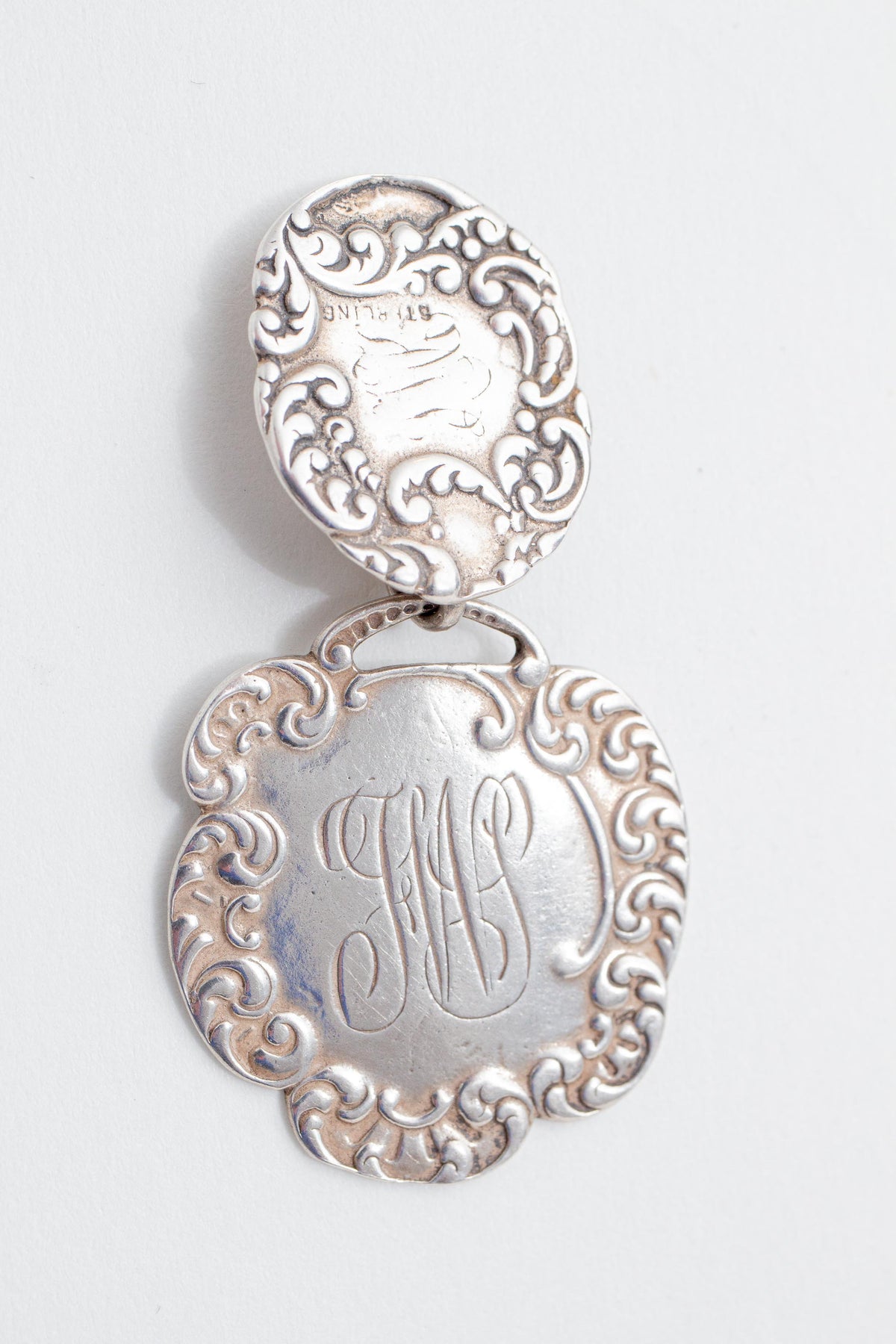 Vintage Reproduction of 19th Century Repousse` Luggage Tag Dangle Earrings in Sterling Silver. by Foree Hunsicker (Stamped Foree 925)