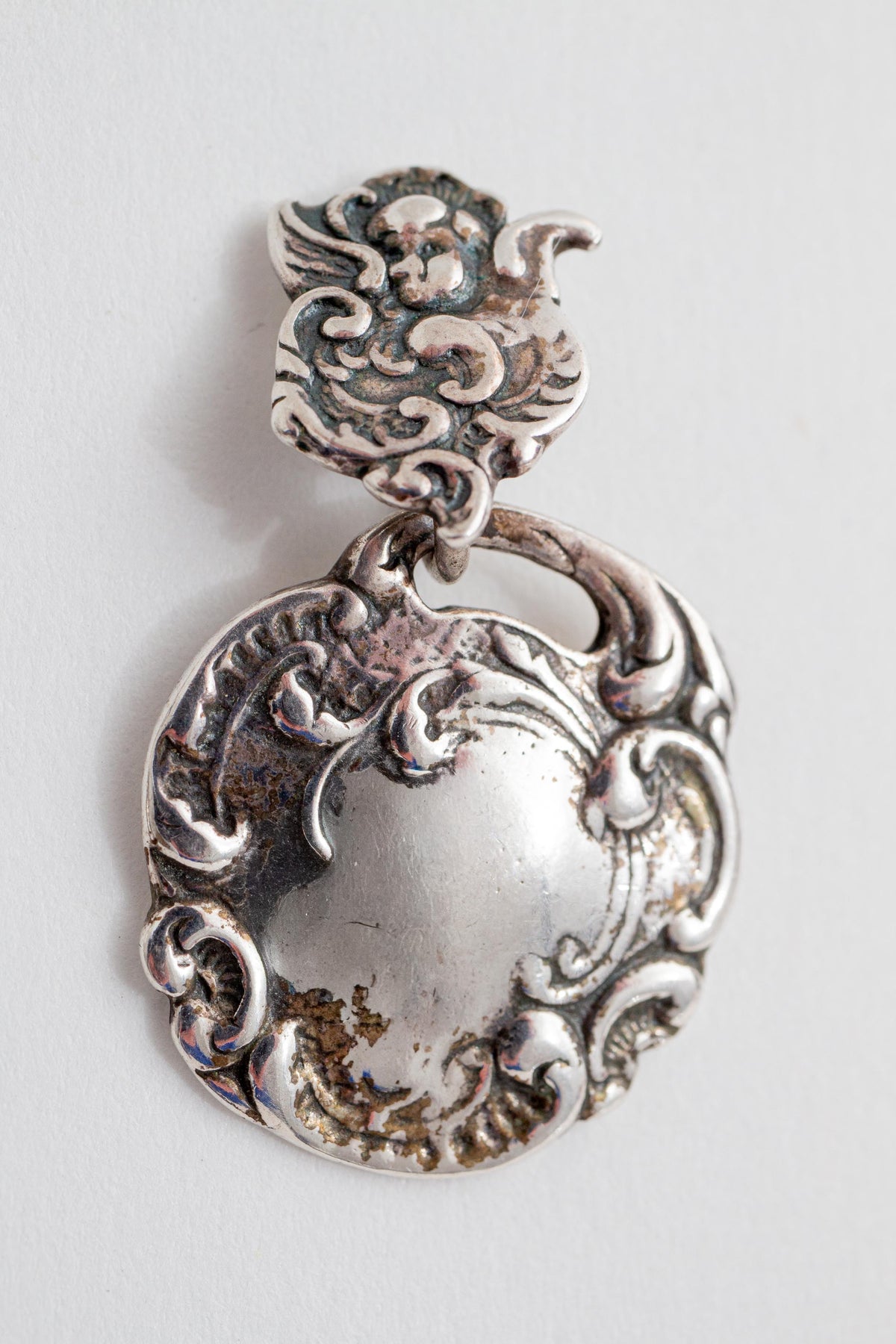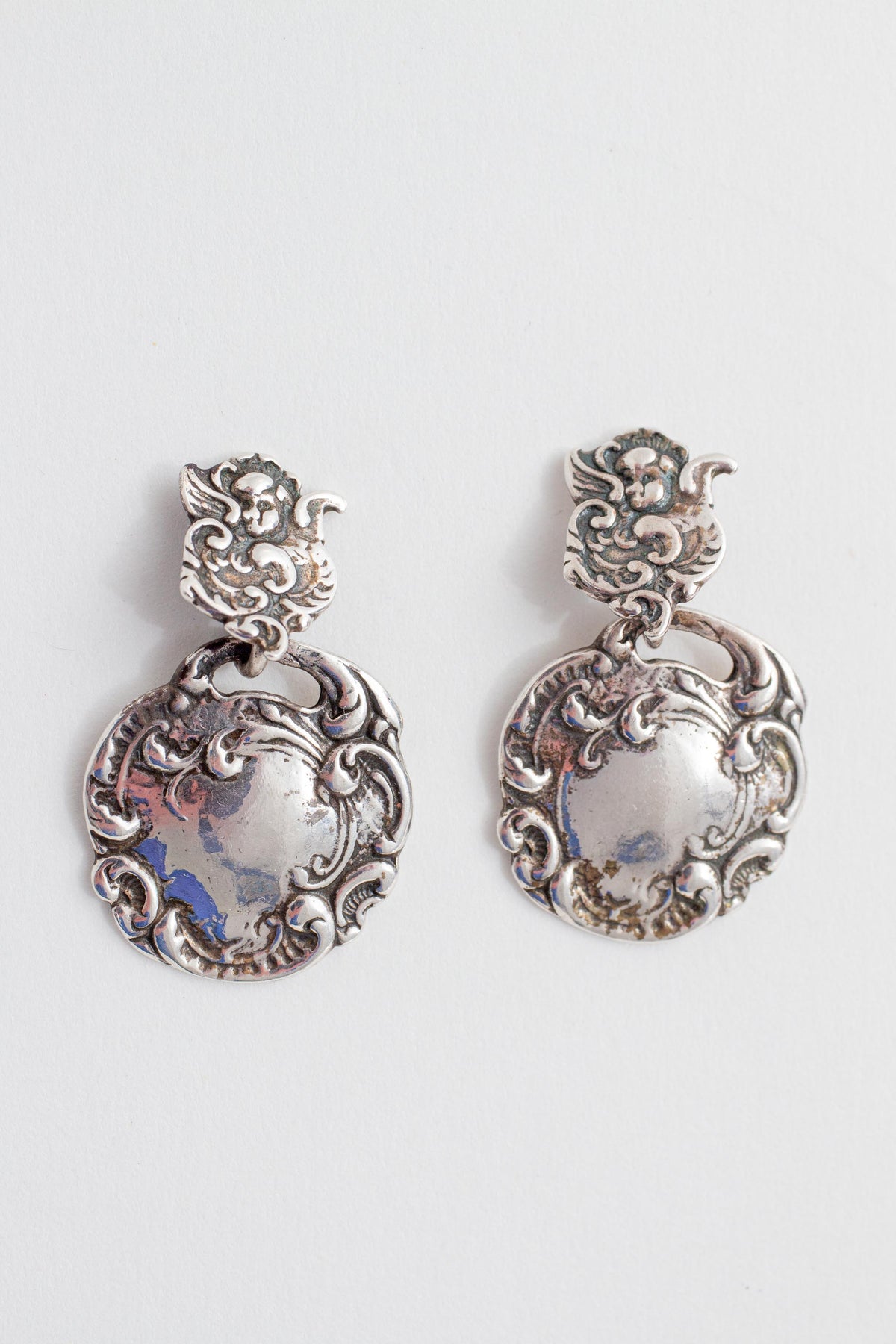 Vintage Reproduction of 19th Century Repousse` Luggage Tag Dangle Earrings in Sterling Silver. By: Foree Hunsicker (Stamped Foree 925)