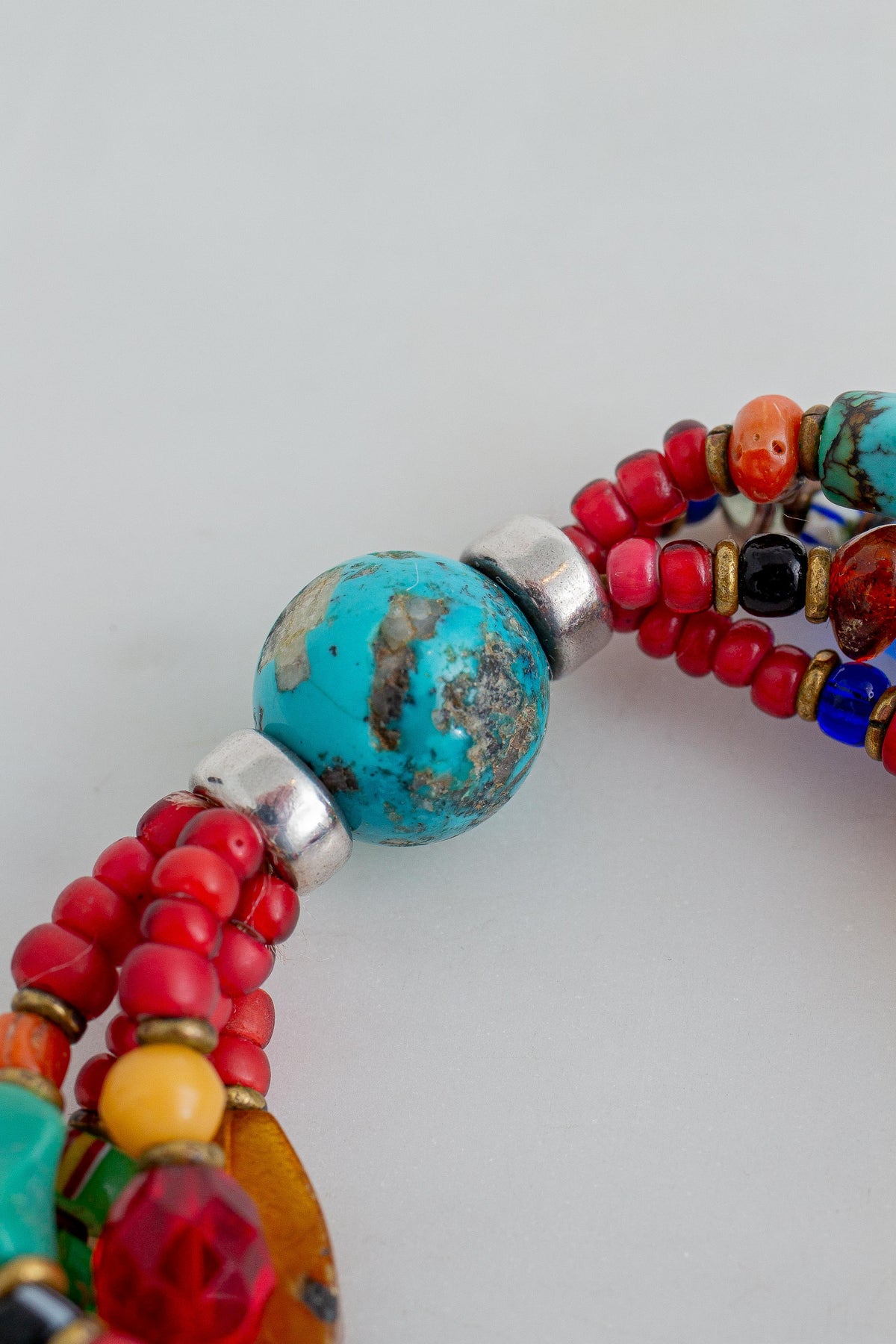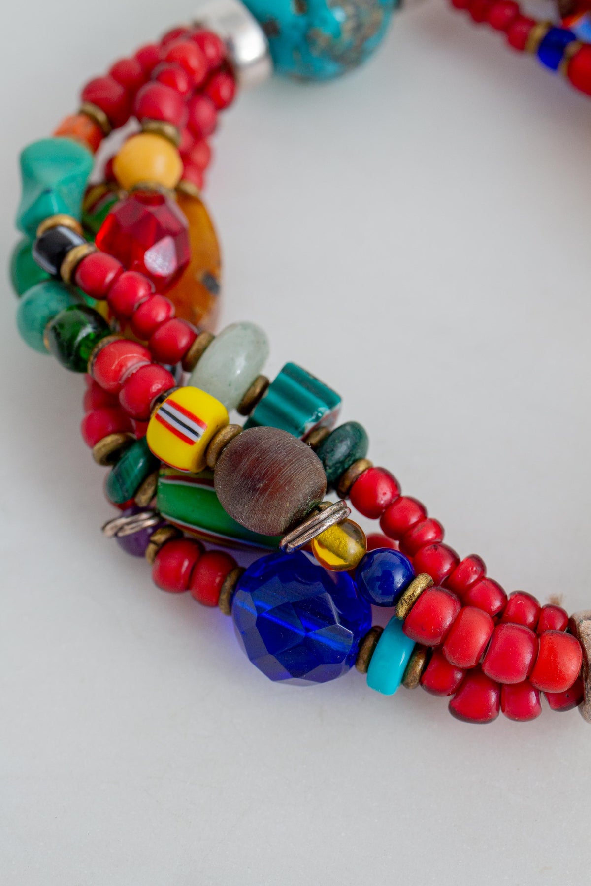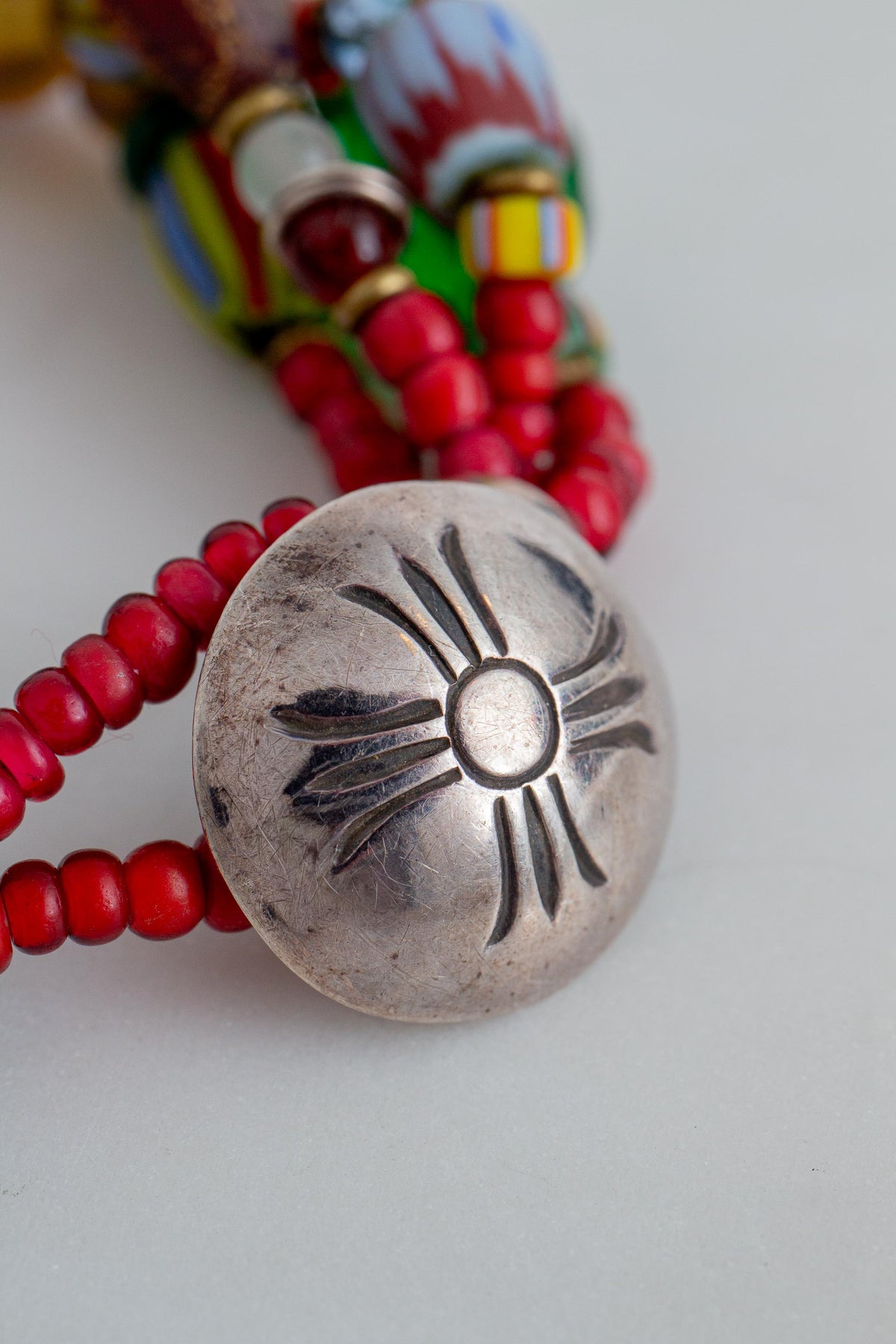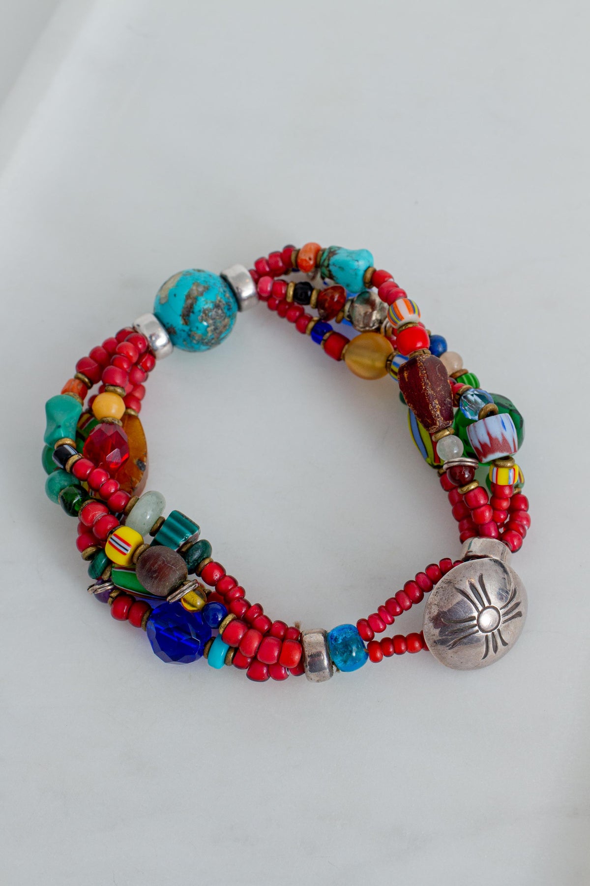 Vintage Multi African Trade Bead Bracelet, Multi Glass Beads and Sterling Silver Clasp Button.