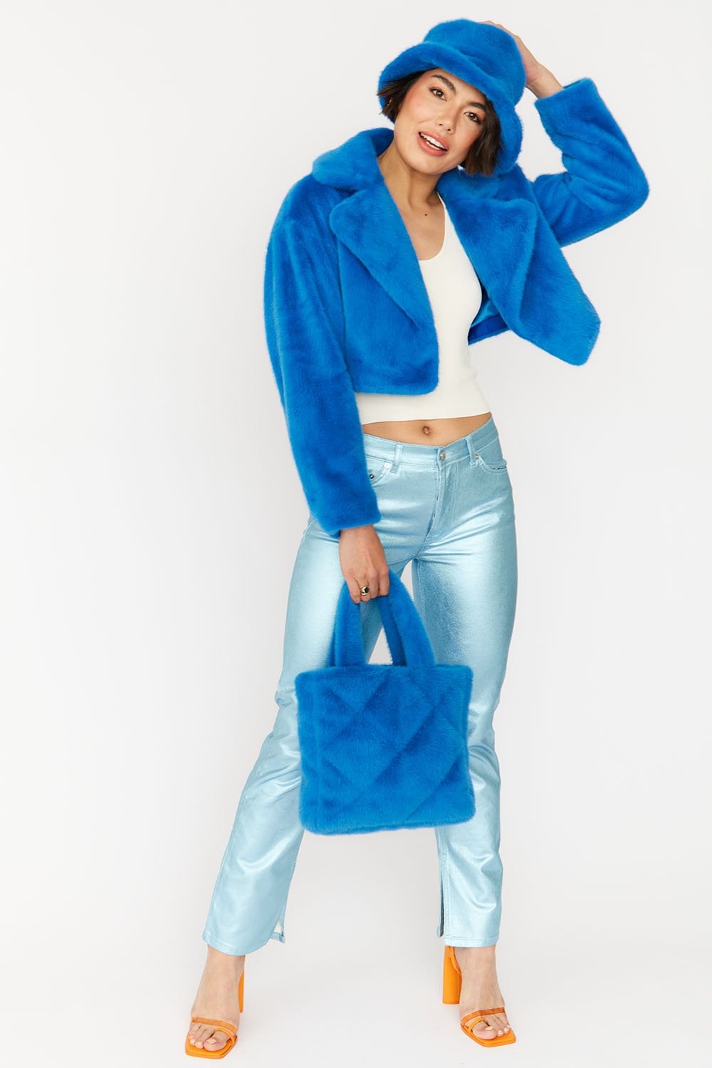Royal Blue Faux Fur Cropped Jacket. Fabric: 15% Acrylic, 85% Modacrylic