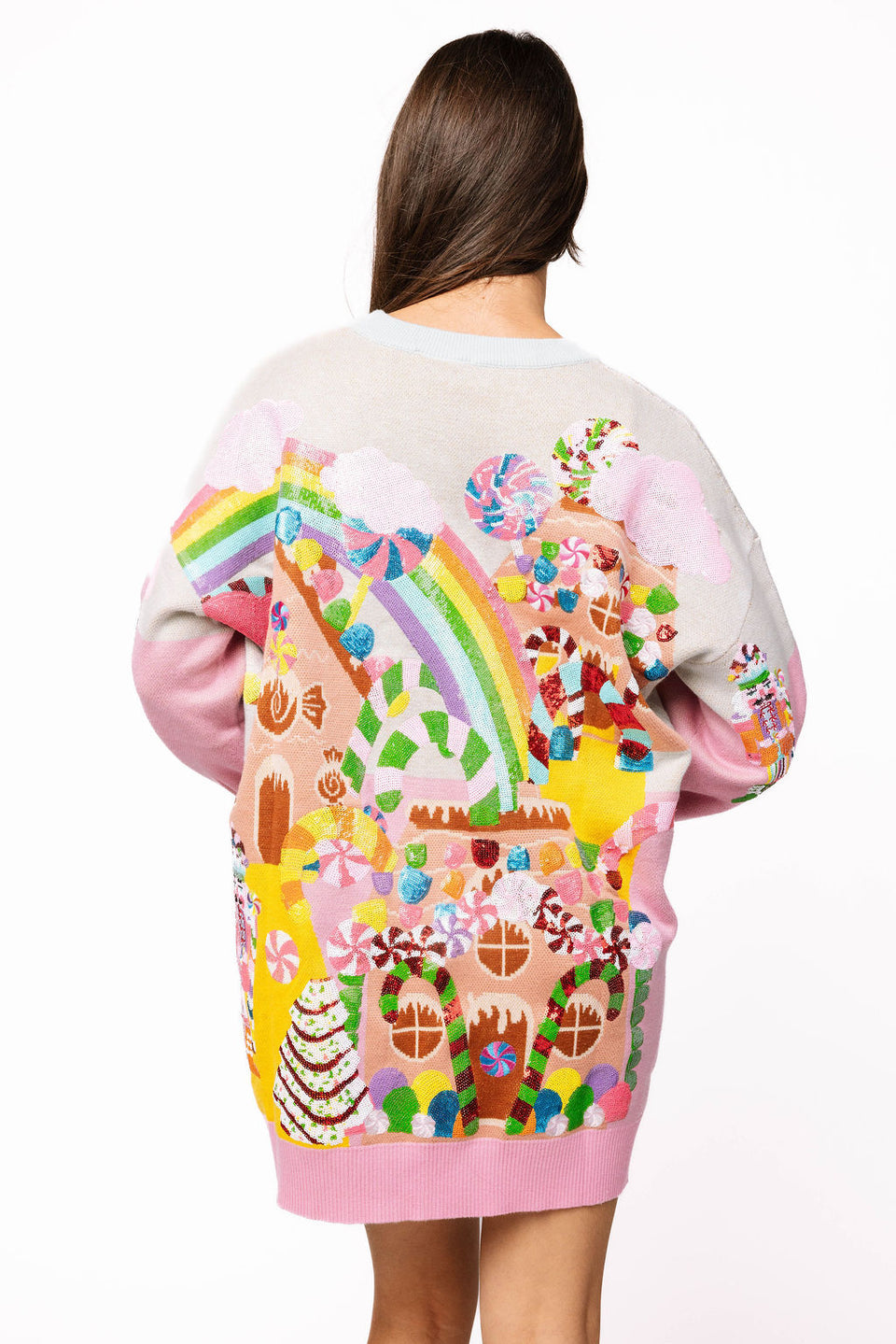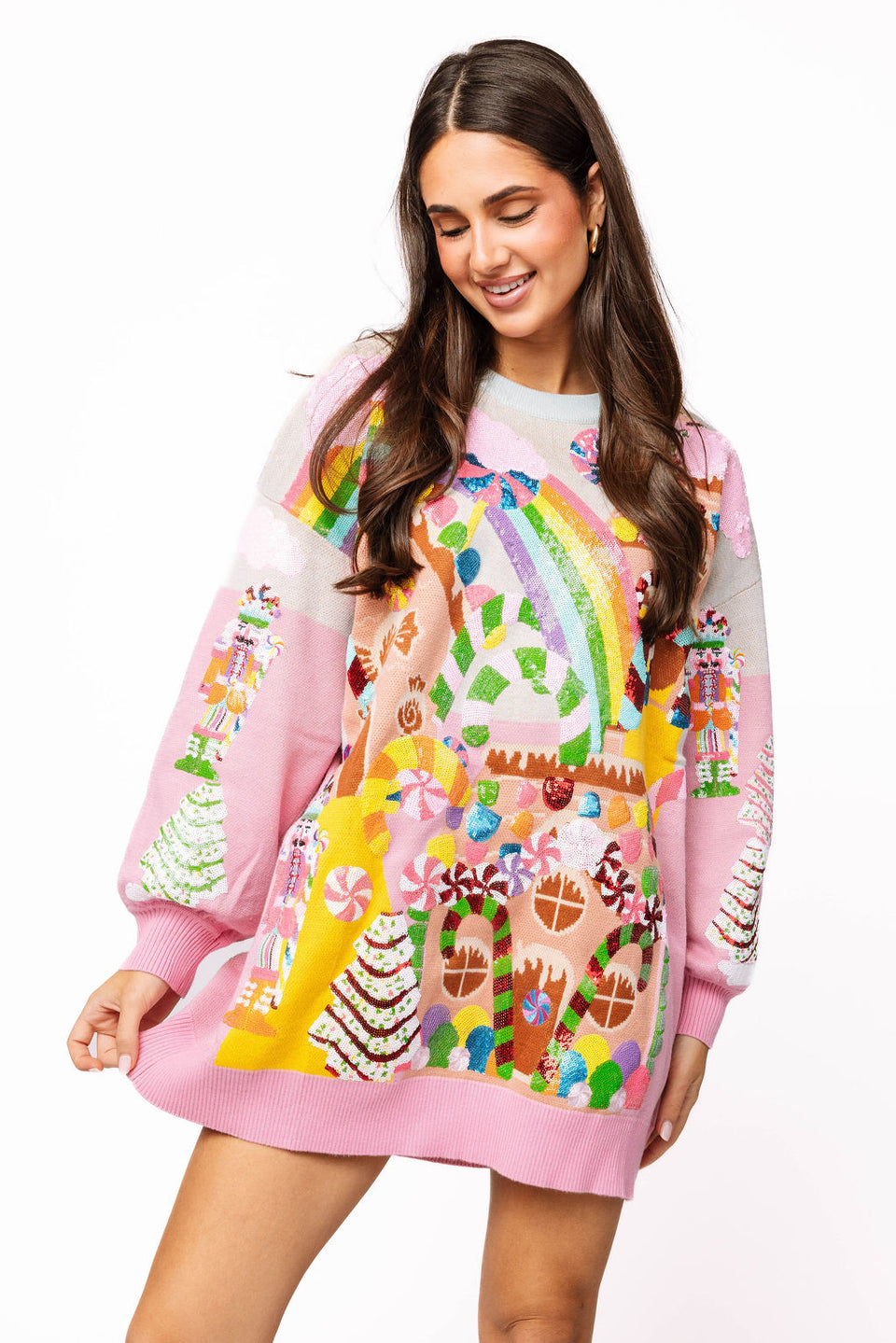 Step into a whimsical world with this Multi Christmas Candyland Knit Sweater Dress. Bursting with colorful charm and delightful details, it brings the magic of Candy Land to your holiday wardrobe. Cozy and festive, this dress makes every moment feel sweet and fun. Perfect for spreading joy with every step!